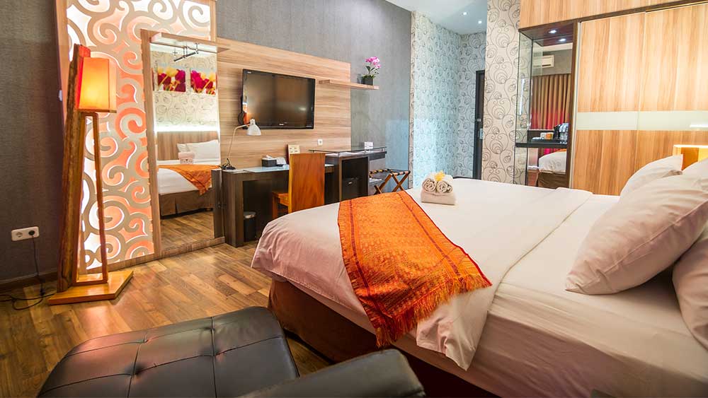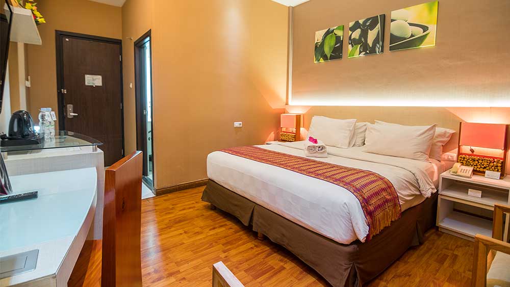 Enjoy the Family rooms in one unit consisting of two rooms with two bath rooms. Our Family room offers a living room, dining room, kitchen, and a desk to complete a work while doing travelling with your family. This unit is viewing to the green trees and swimming pool with total area of 60 sqm.